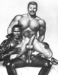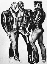 | QUOTATIONS FROM TOM OF FINLAND THE LOUVRE “I know my little ‘dirty drawings’ are never going to hang in the main salons of the Louvre, but it would be nice if — I would like to say ‘when,’ but I better say ‘if’ — our world learns to accept all the different ways of loving. Then maybe I could have a place in one of the smaller side rooms.” — 1991 HAPPY SEXUALITY “In those days, a gay man was made to feel nothing but shame about his feelings and his sexuality. I wanted my drawings to counteract that, to show gay men being happy and positive about who they were. Oh, I didn’t sit down to think this all out carefully. But I knew — right from the start — that my men were going to be proud and happy men!” NAKED MEN “I almost never draw a completely naked man. He has to have at least a pair of boots or something on. To me, a fully dressed man is more erotic than a naked one. A naked man is, of course beautiful, but dress him in black leather or a uniform — ah, then he is more than beautiful, then he is sexy!” MONEY “…I named what I thought was an enormous sum. Without blinking an eye, he gathered up my life work and handed me the amount I asked for: $70… I didn’t expect more. Remember that homosexuality was forbidden in most of the Western world; so all those businesses were illegal, black market. I knew that they wouldn’t have paid me more anyway — or so I believed then.” ABSTRACT ART “The abstract, especially in those rough sketches, is very important to me, perhaps because of my advertising background, where layout is so important. Sometimes those first few lines cut the paper into such satisfying shapes that I don’t want to go on, but I always do, adding nostrils and nipples and bootstraps until I have filled the paper up as usual.” MATTERS OF SIZE “Cock size doesn’t matter to me. I didn’t start doing those gigantic cocks until the censors let the magazines publish full frontal nudity. I had to come up with something you couldn’t get in a photograph. So those big cocks are all for the other guys — I’m an ass man myself.” MALE MUSE “Whenever I was depressed or disgusted, I would feel him, that spirit inside, urging me back to living, back to drawing, I believe there is a lot to the world that can’t be seen or touched, and if you turn away from that — especially if you are an artist — you are avoiding an important part of life, maybe the very heart of it.” ENCOURAGE "My drawings are primarily meant for guys who may have experienced misunderstanding and oppression and feel that they have somehow failed in their lives. I want to encourage them. I want to encourage this minority group, to tell them not to give up, to think positively about their act and whole being." — 1990 INTERVIEW WITH PATRICK SARFATI "My whole life long I have done nothing but interpret my dreams of ultimate masculinity, and draw them." — published in Rebel |