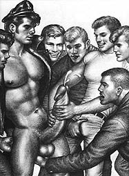 Tom of Finland, the artist and man, was born, raised and lived most of his life in his native Finland, dying there in 1991 at the age of 71. I was in my mid-20s when Tom and I started corresponding back in 1976 and was ripe and ready to experience the messages he portrayed in his works. Tom quickly became the most important person to influence my life to that date. I discovered through his work that I was as much of a man as any of my heterosexual counterparts and that sex and love between men could be a heroic bonding experience - not unlike that of Greek and Roman soldiers. |